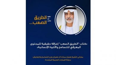 الشيخ نهيان مبارك: كتاب “الطريق الصعب” إضافة حقيقية لمعنى التسامح قال الشيخ نهيان مبارك آل نهيان، وزير التسامح والتعايش…