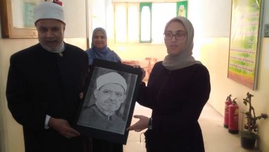 طالبة بكلية الاقتصاد المنزلي تهدي نائب رئيس الجامعة لوحة فنية لفضيلة الإمام الأكبر