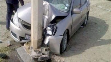 إصابة ثلاثة افراد في حادث تصادم بعمود انارة بمركز جرجا