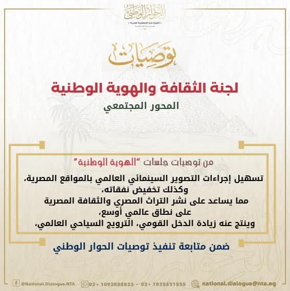 أوصت في النهاية بـ “ضرورة تيسير إجراءات التصوير السينمائي العالمي بالمواقع المصرية وكذلك تخفيض نفقاته”،