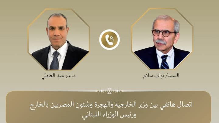 تلقى الدكتور بدر عبد العاطي وزير الخارجية والهجرة إتصالاً هاتفياً من “نواف سلام” رئيس الوزراء اللبناني.