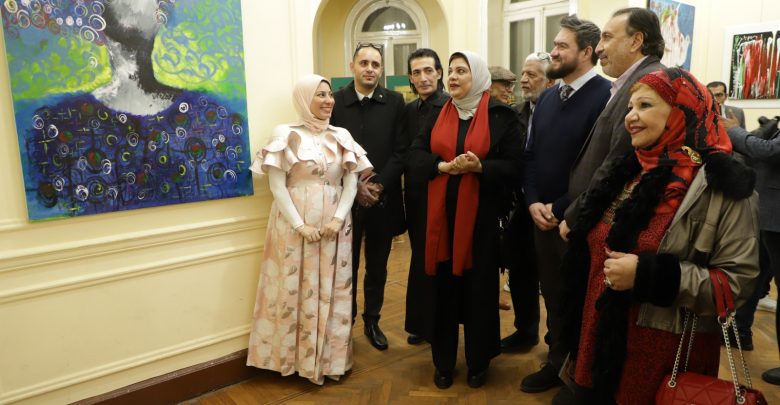 والدكتورة فينوس فؤاد وكيل وزارة الثقافة والفنان حسن العدل “معرض ألوان المها” للفنانة مها الجندي رئيس مكتب الإبداع الفني وتنمية المواهب في إتحاد شباب محافظة البحيرة وعضو جمعية الصداقة المصرية الروسية،