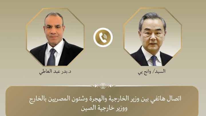 جرى إتصال هاتفى بين الدكتور بدر عبد العاطي وزير الخارجية والهجرة و “وانج يي” وزير خارجية الصين