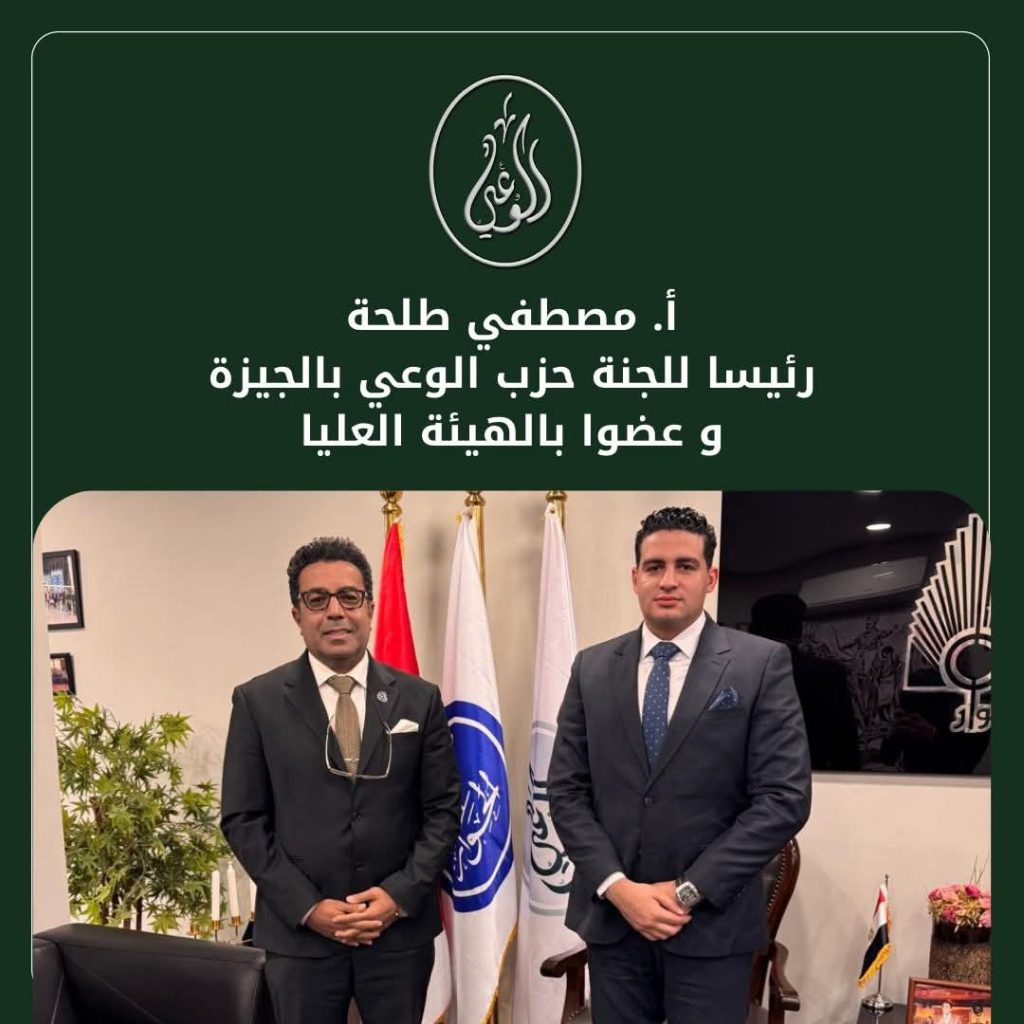 مصطفي طلحة رئيساً للجنة حزب الوعي بالجيزة وعضواً بالهيئة العليا