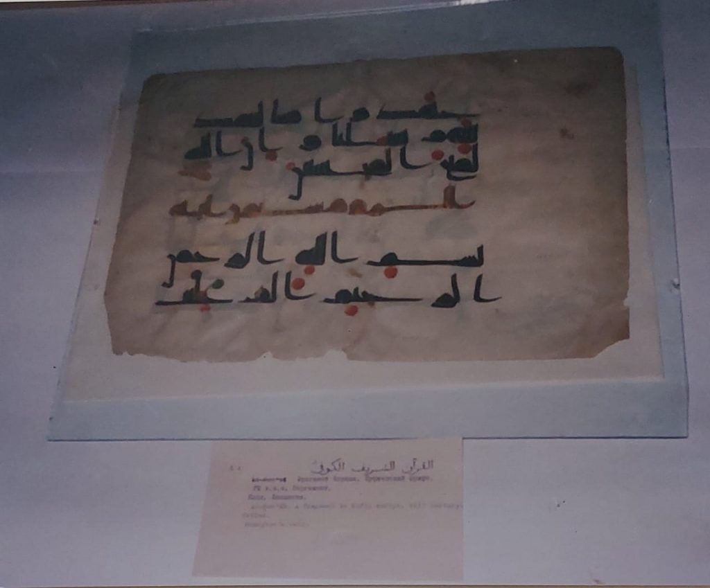 وكذلك صورة أرشيفية لكتاب ” القانون في الطب” لابن سينا ، وصفحة من القرأن الكريم بالخط الكوفي ، وصورة لمسجد موسكو والذى يعد من أقدم المساجد بالعاصمة.