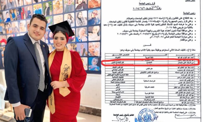 يتقدم الكاتب الصحفي سيد عبد الفتاح بخالص التهاني والتبريكات إلى الصديق العزيز الكاتب الصحفي شريف سليمان، بمناسبة تعيين كريمته معيدة بكلية الآداب – جامعة بني سويف.