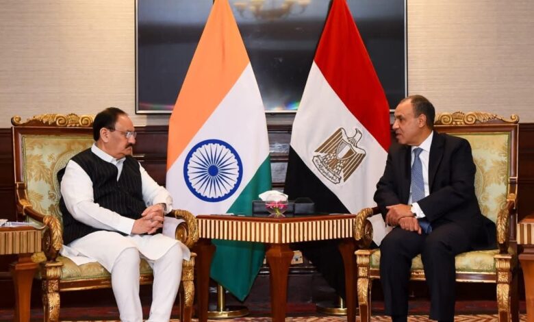 إلتقى الدكتور بدر عبد العاطي وزير الخارجية والهجرة وشئون المصريين بالخارج بالسيد جاغات براكاش نادا وزير الصحة والكيماويات والأسمدة ورئيس حزب بهاراتيا جاناتا الحاكم بالهند،